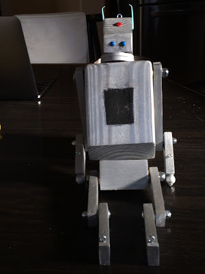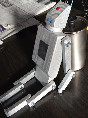 Last Mechanical Monster reader Richard B. sent me these photos of a terrific Robot marionette he built for his grandson (strings not yet attached), and gave me permission to share them. Great design, I'd love to see it in action. Thanks, Richard!