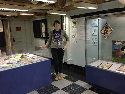 Laura, wearing a "Peanuts" hoodie to fit the day's theme, gave us a tour of her "Cartoons at War" exhibition. It's in a space designed for temporary rotating shows, and in fact closes today. Sorry if you missed it!