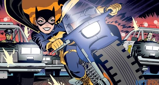 Just as I posted this, I noticed the orange mass of Batgirl's hair. Surrounded by the high contrast of her black cape, it pulls the reader's eye right to her face. And it still reads as "hair" even though there's not a single line drawn on it. Terrific.