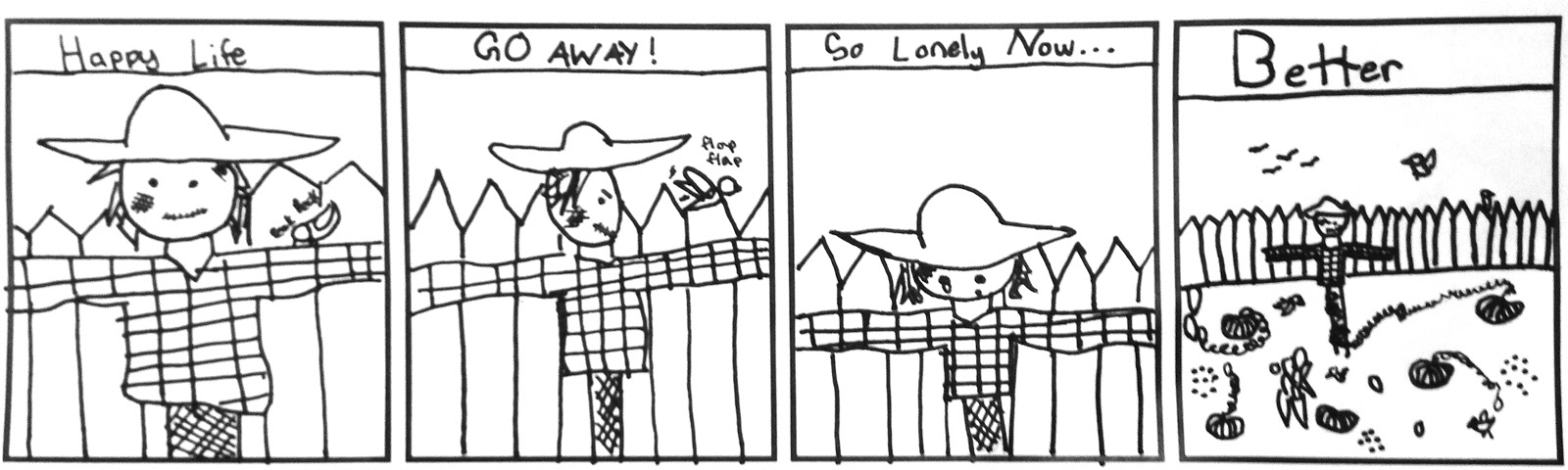 I liked this strip about a scarecrow who does its job too well. It's like a little poem.