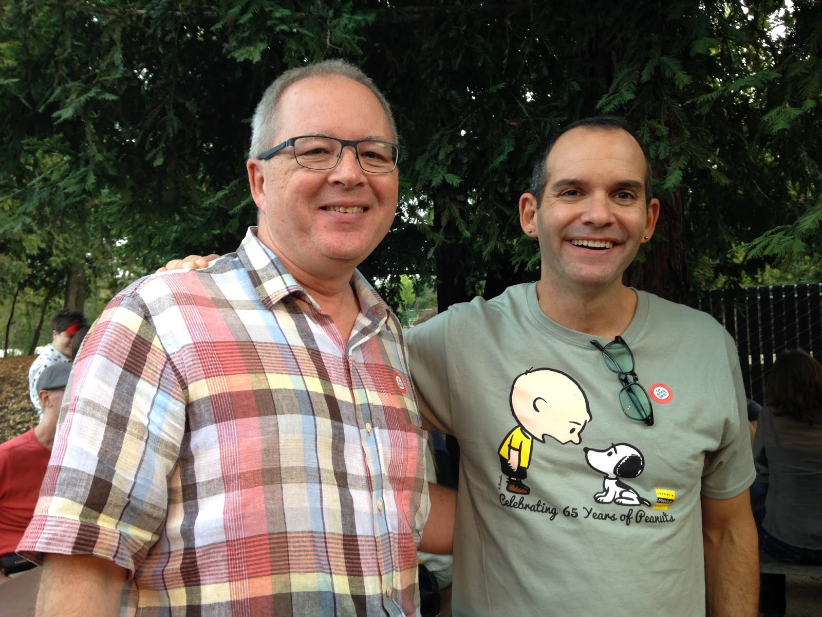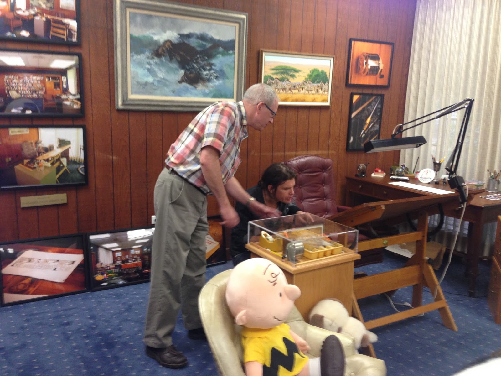 With Terry Moore in Schulz's studio. Notice the smattering of Eisner and other awards on the shelf behind us. These must be the ones that didn't fit into the museum, stuffed as it is with Emmy Awards and all.