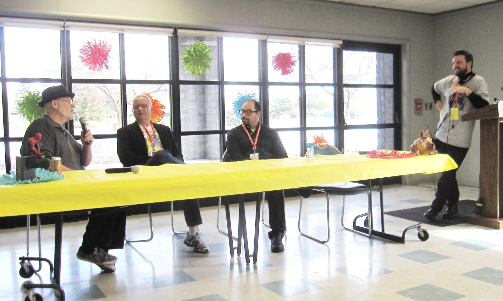 Cartoonist Tom Beland ("True Story Swear to God," Marvel), me, Lex, and moderator Nathan Libecap doing our panel on "Comics as Literature." I think it went well.