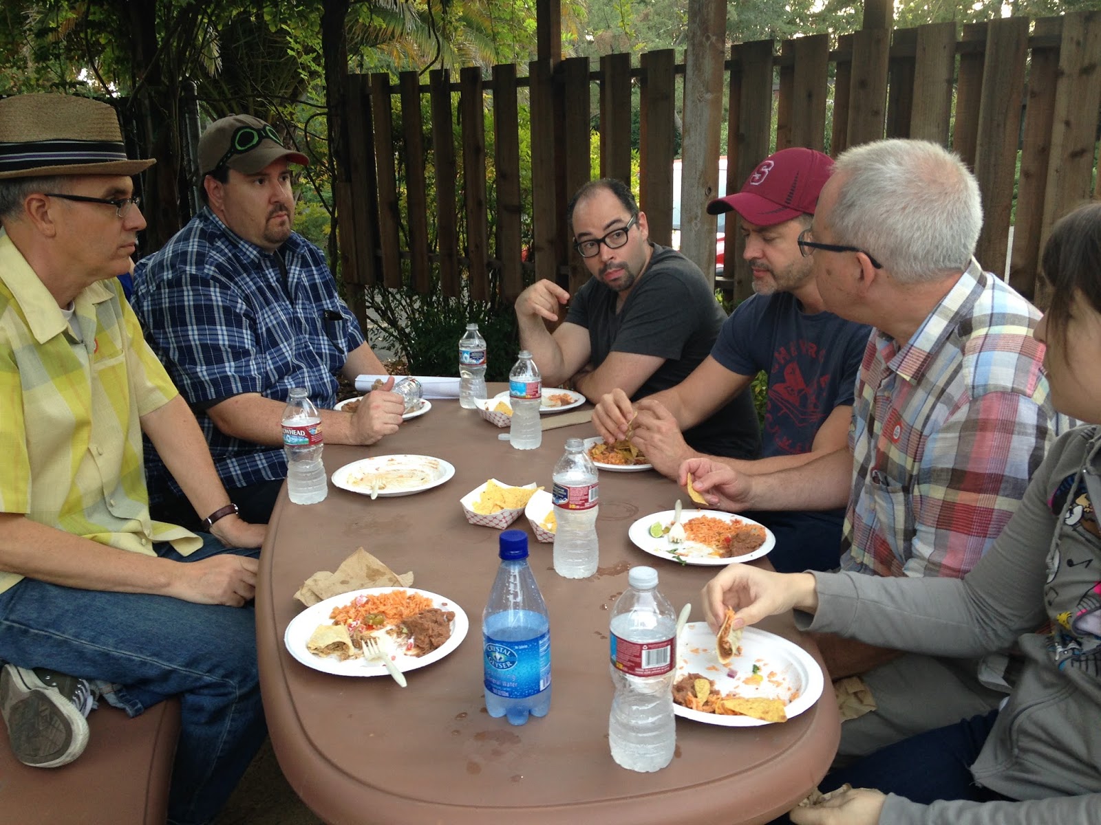 Tacos with Jonathan Lemon, Lucas Turnbloom, Lex Fajardo, Stephan Pastis (who didn't do the Sketch-A-Thon but just sort of shows up for free food), me and my daughter Robin.
