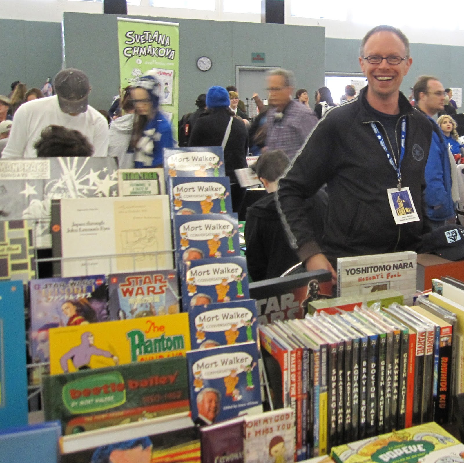 This was a long, very nice day for me. I reconnected with some friends who don't normally come out this way, made a couple of new ones, sold a few books, taught 24 Girl Scouts how to make comics, and ate a pretty darn good taco combo plate. I need to mention cartoonist Shaenon Garrity and Cartoon Art Museum curator Andrew Farago, who did me the honor of asking me to draw a picture in a book they're compiling for their newish son, Robin. I didn't get any good photos but it was terrific to see them.