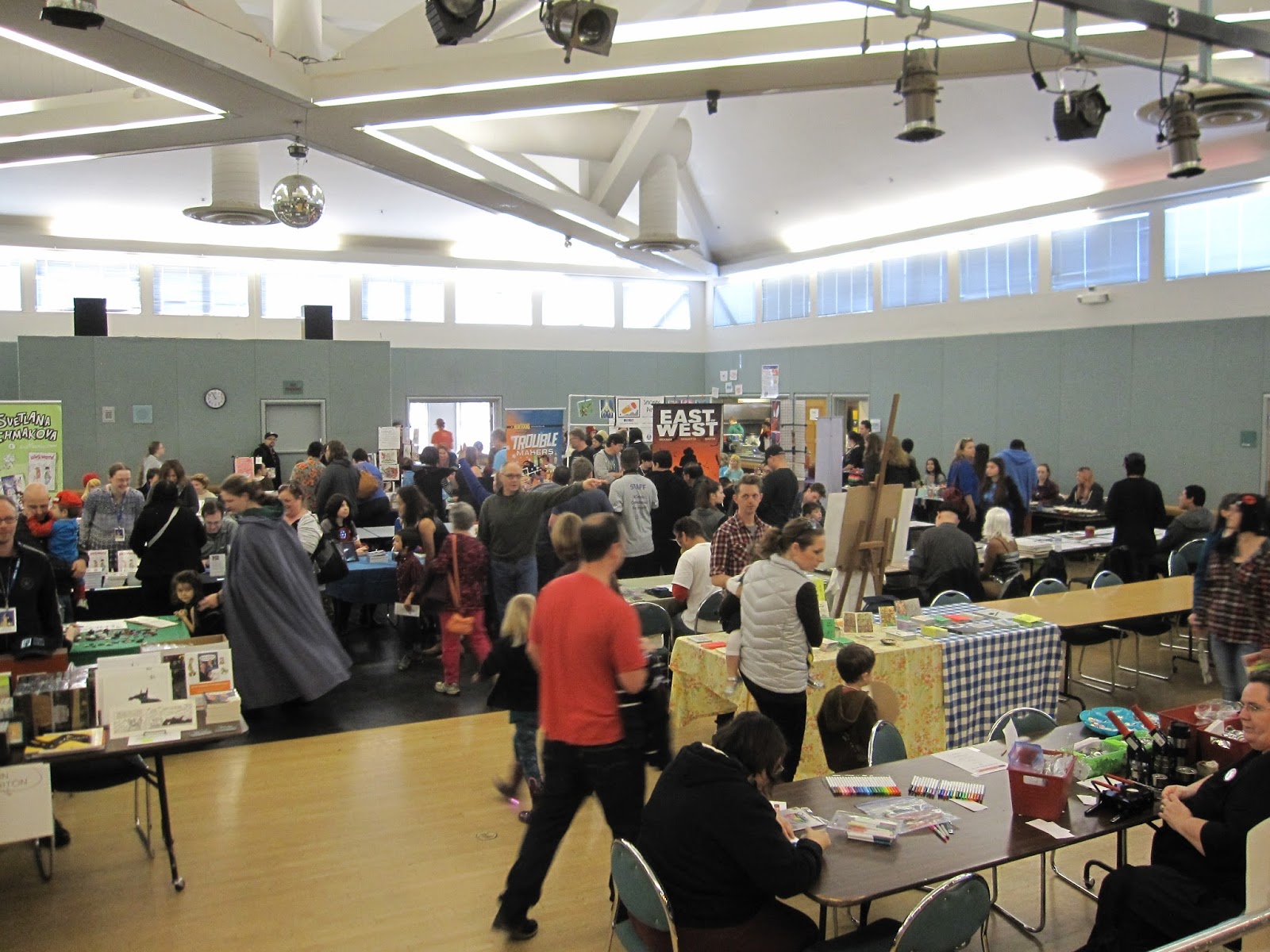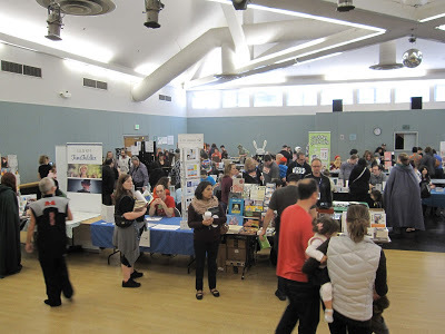 The bulk of the floor space was occupied by Artists' Alley. The building lobby hosted bookstores, comic book sellers, and toy vendors. Culinary arts students served teriyaki and sushi. Side rooms hosted Magic card tournaments, craft tables, Legos, and quiet spaces for students and pros to talk. There were plenty of costumed folks, though I didn't think to take any good photos of them. Late in the day, organizers announced that 2400 people had attended. That felt like a good number.
