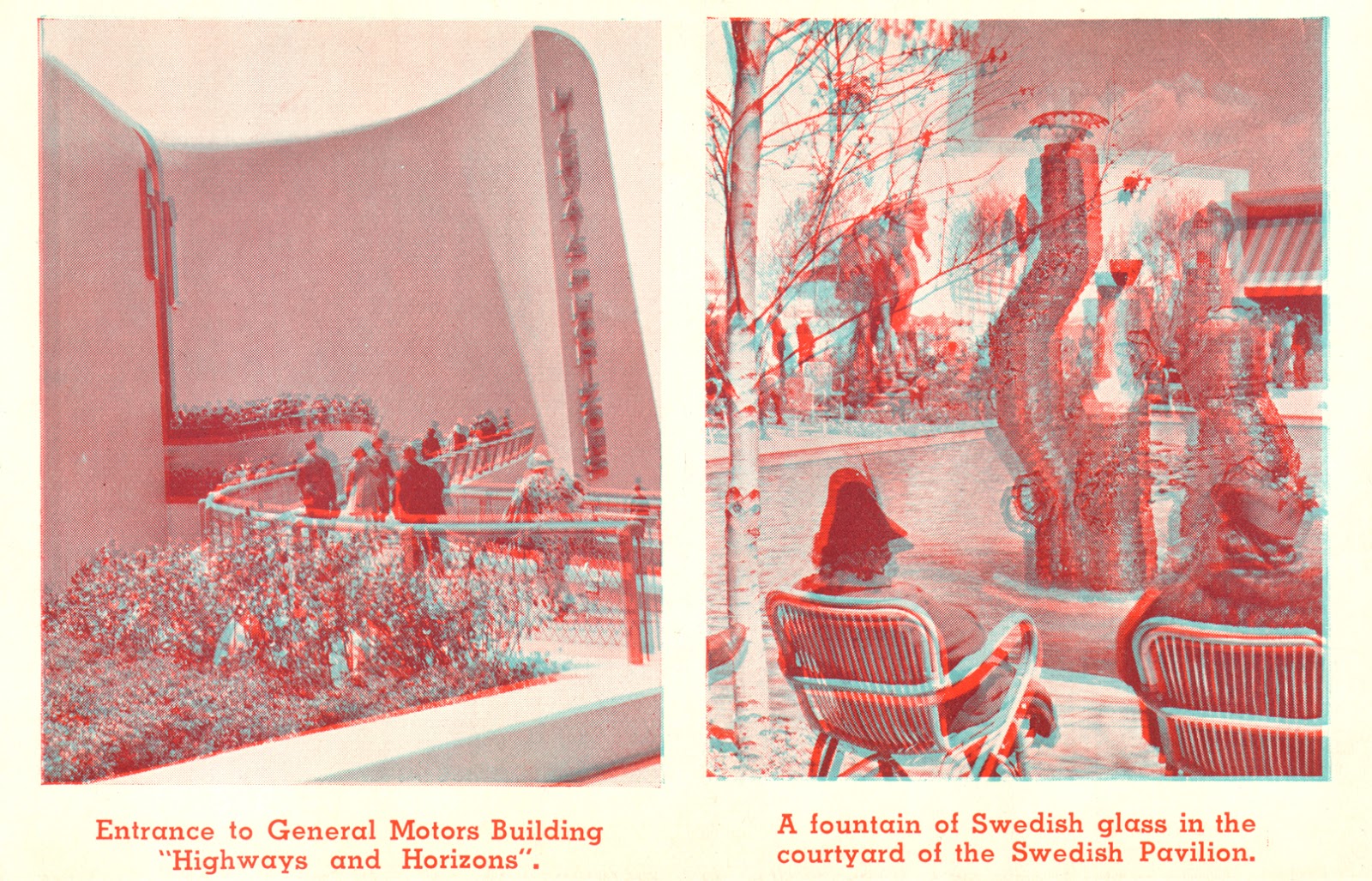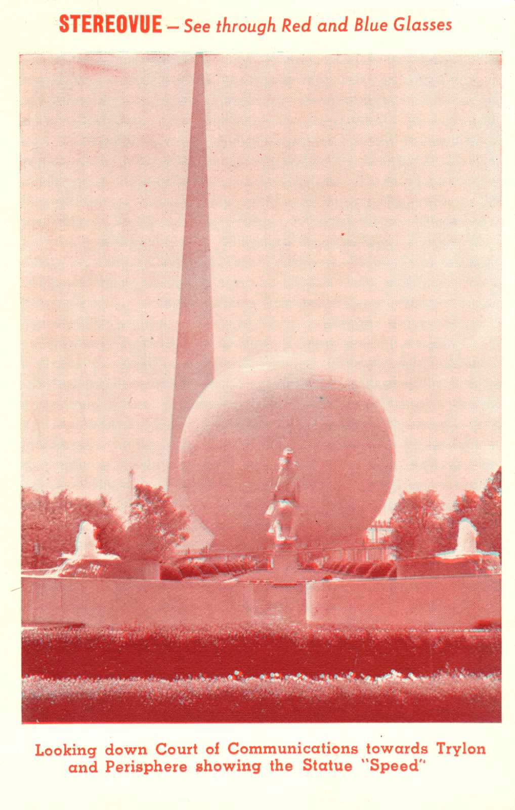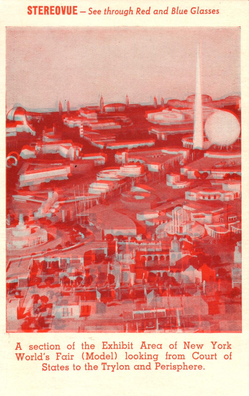Friends and long-time readers know of my love for both the 1939 New York World's Fair, which I featured in my book Whatever Happened to the World of Tomorrow, and old-fashioned red-blue 3-D images (called "anaglyphs"). Here, now, in this very post, those worlds collide.