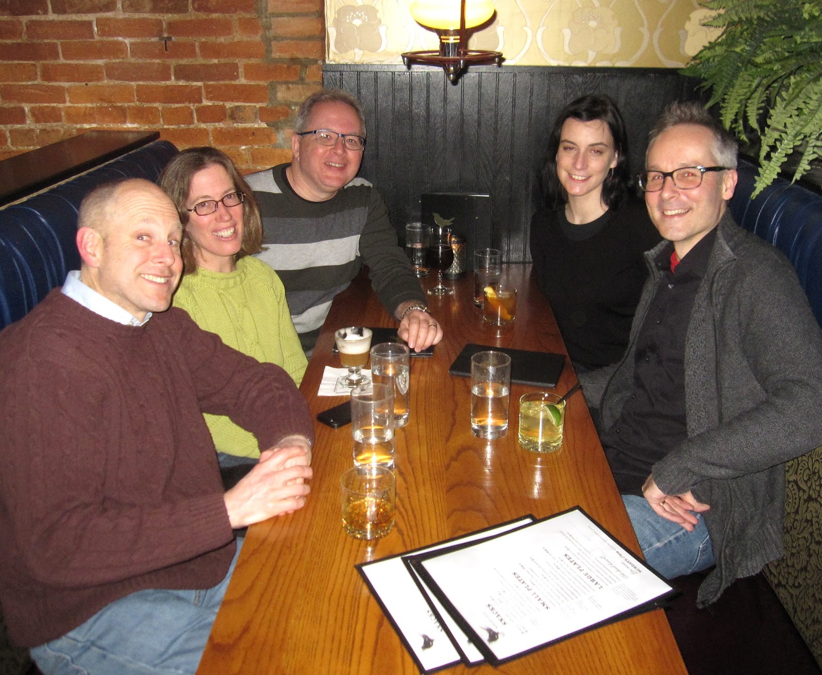 Enjoying adult beverages after the library talk with Jim, Jim's wife Kat, Anne and Jerzy. It turns out we've all worked with my pal and editor Charlie Kochman at Abrams, and so traded much intelligence and strategy. Heh heh heh.