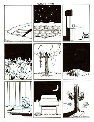 My tribute sketch. I actually had to bring it home to finish it, which gave me a chance to scan it, too. (The steps at upper left are from the very first "Peanuts" strip on Oct. 2, 1950.) If it feels a little melancholy, that's OK. So was "Peanuts."