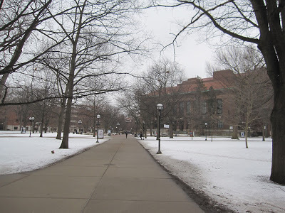 I got home late last night from an exhilarating and exhausting trip to the University of Michigan, where I gave three different talks in two days. I think everything went very well. Unless my hosts were lying, so did they. I've never been to Ann Arbor and found that it lived up to its reputation as the quintessential Midwestern college town. I had some time to do my favorite thing in new places: wander aimlessly. Even better, I got to do it through light snow flurries, which is an exotic treat for me (not so much for others who don't live in coastal California, I know).