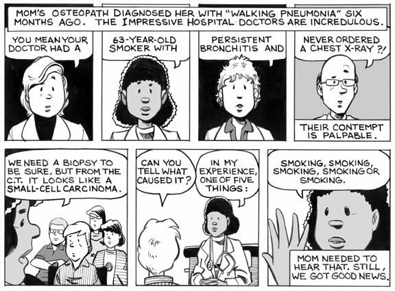 I'm annotating individual pages from my book Mom's Cancer as they're posted on GoComics.com. These are my notes on Page 18 (June 29).
