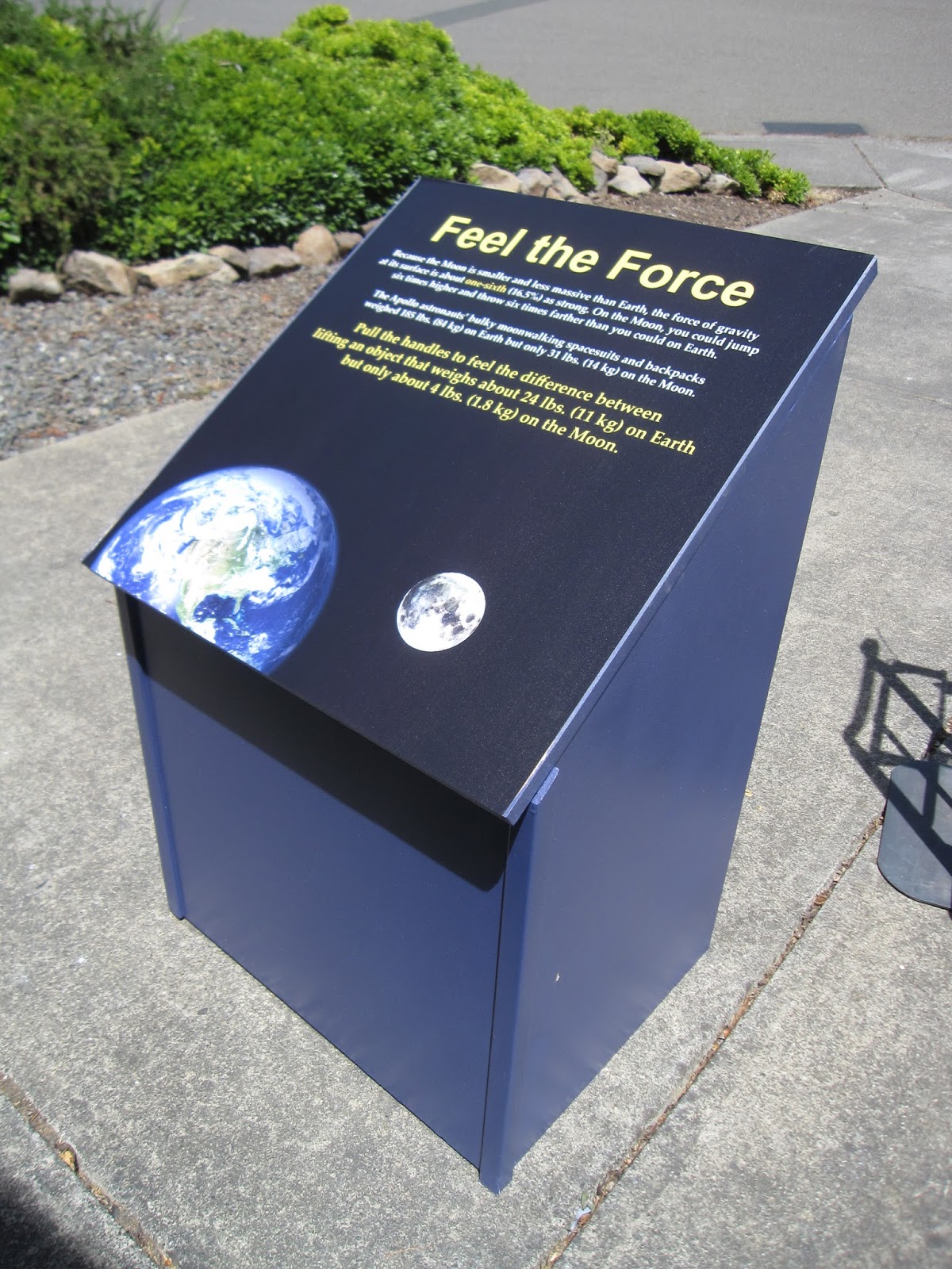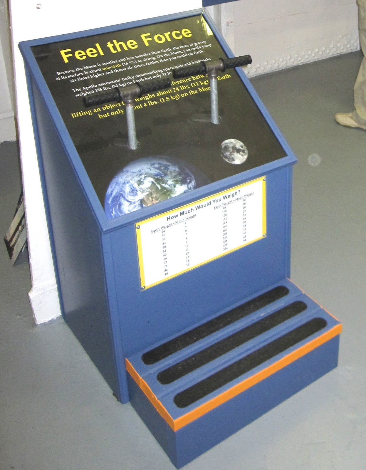 In 2012, I built my first interactive display for a museum. My daughter Laura is on the staff of the USS Hornet Aircraft Carrier Museum in Alameda, Calif. That's the ship that picked up Apollos 11 and 12, so they've got some nifty Space Age artifacts. Laura was redoing the ship's Apollo Exhibit, and I got to build a box comparing gravity on Earth to gravity on the Moon (one-sixth as strong) via the highly scientific means of pulling handles that look like Wile E. Coyote TNT plungers.