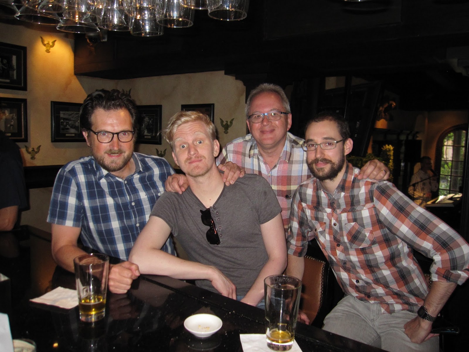 Speaking of end-of-day beverages . . . You know that game "one of these things is not like the other?" You might think it's the guy who's not wearing plaid, but no. Three of these guys are British. Two of them are physicians. And one of them's me. With Ian Williams, Andrew Godfrey (who will be organizing the 2016 graphic medicine conference in Scotland), and Jack Bedeman.