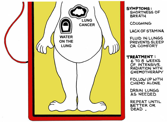 One thing I like about splitting the image into two pages is it naturally divides Mom's tumors, and therefore the treatments she received for them, between her head and her chest. Which is basically what happened: she had head doctors and chest doctors, and rarely did the twain meet.