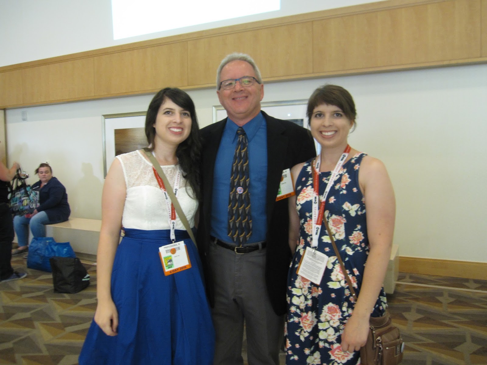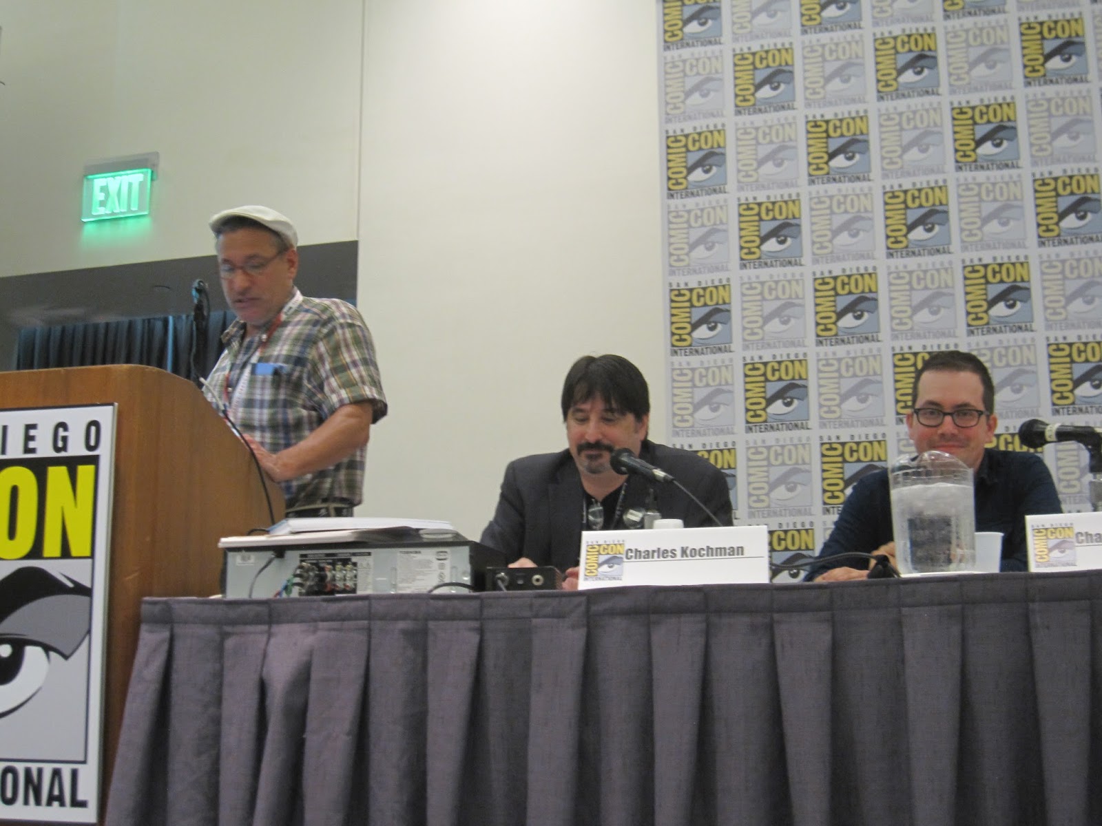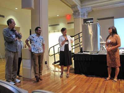 With Sheila and Juliet McMullin. Here's how smart and sophisticated our conference attendees are: the whole day I wore that shirt, two people told me I looked like an 18th Century sailor and one person said if I had a beret I could be a Paris street performer, but not one single person yelled "Hey, I found Waldo!" That's how smart and sophisticated we are.I don't mean to overlook the opening-day keynote speech of Jared Gardner, professor of English and film studies at Ohio State University. His speech was very good--thoughtful, personal and moving. I just didn't get any good photos of him or have much of a chance to talk with him, but he made a real contribution to the weekend.