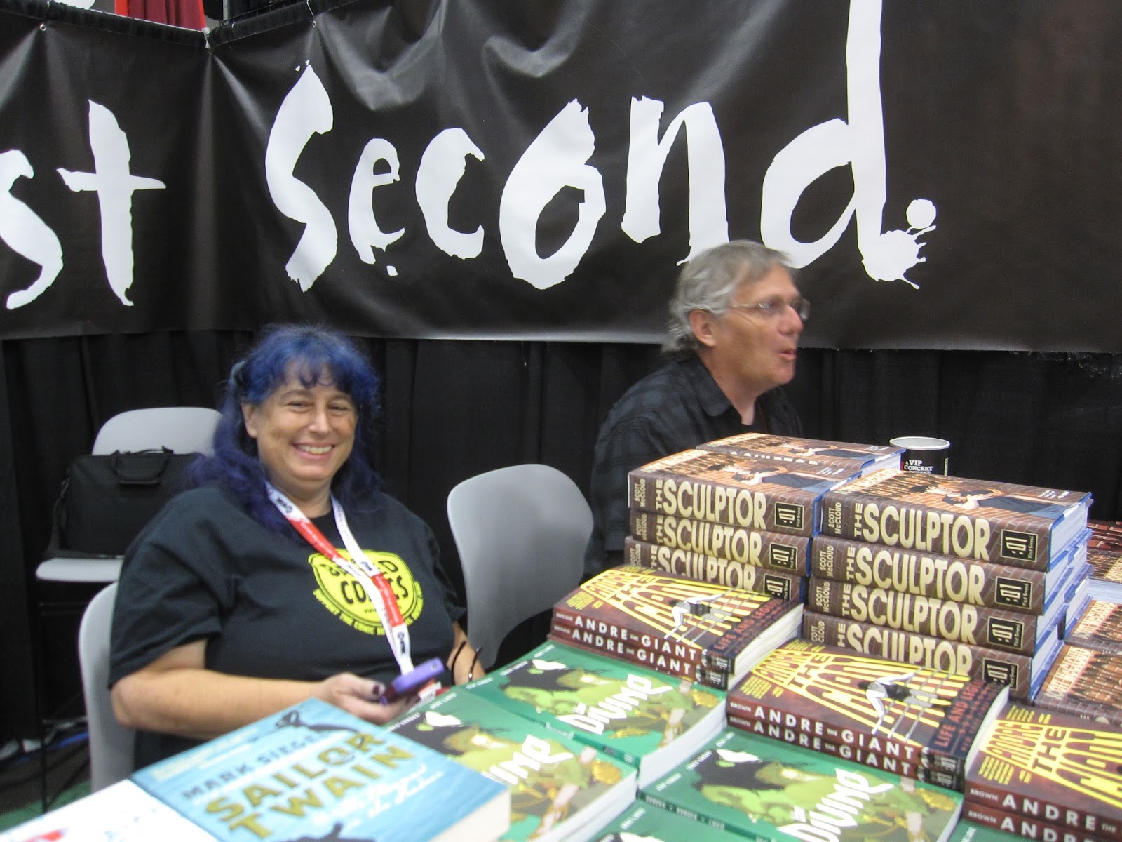 Scott McCloud and his wife Ivy. I had a nice talk with Scott about the diversification of comics in terms of sex, age, and publishers represented in the Eisner Awards. Although as two middle-aged white guys we both admit to our self-interest in the old status quo, we're both happy to see work by new, young, often female creators get recognized over the same old Marvel and DC stuff that might have dominated in the past.