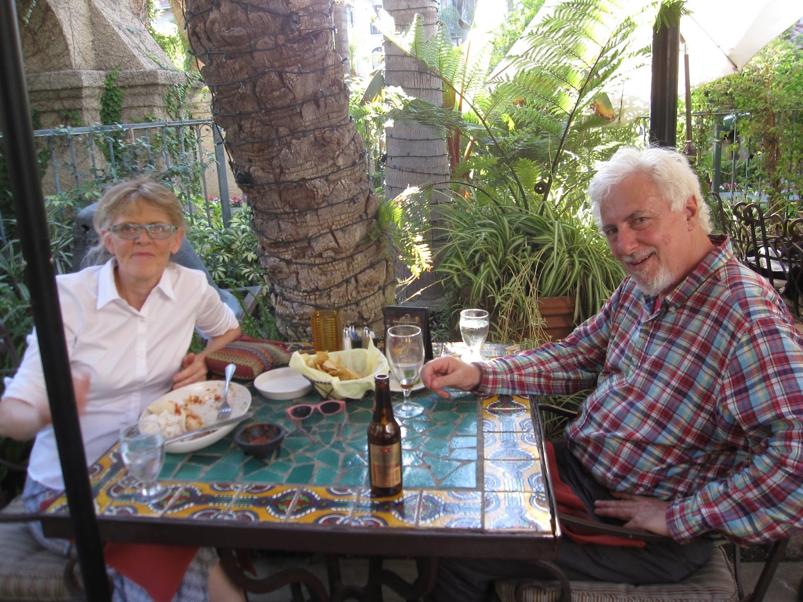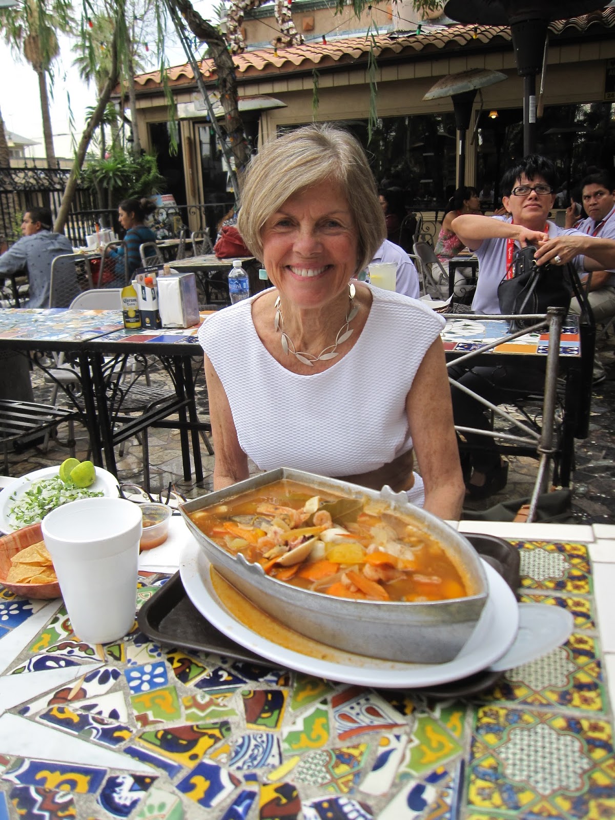 Saturday lunch, a small group of us went to a very good Mexican restaurant a couple of blocks away. This is Linda Raphael, who directs the Medical Humanities program at George Washington University. She wanted a light lunch, so she ordered soup. They brought her this. After several minutes of befuddled laughter, she got bowls and shared it with everyone (it was good!). Midway through lunch it began to rain. Luckily, we already had a boat.