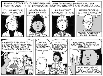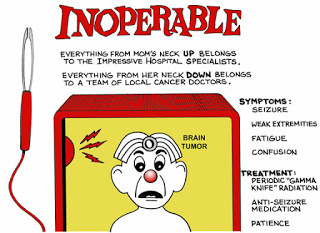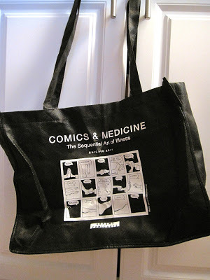 From time to time, people ask if pages from Mom's Cancer are available as prints or posters. (No, sorry.) This is almost always the page they're interested in. We used this image for the cloth bags given to participants of the 2011 Graphic Medicine Conference in Chicago (with, as I recall, a kind donation from my publisher Abrams to help pay for the bags).