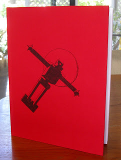 Last step: Drew a jaunty flying robot on the cover. Wrapped it up and gave it to Karen.She sat right down and started reading the book last night, so I guess it's a success.