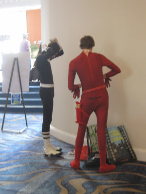 booksigning at the Dark Horse booth at 11 o'clock, so I began circling the booth around 10:45 to catch them. My stalking paid off. In addition to just saying hi to two of the nicest and most accomplished people in comics, I had an important favor to ask of Richard. Someday I'll tell you about it, but he said "Yes."