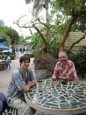Same walk: stumbled across Andrew Farago from San Francisco's Cartoon Art Museum and Chris Sparks getting a morning coffee. I joined them for a while. Later this day, Andrew was awarded the convention's Inkpot Award for services to comics above and beyond the call of duty. He deserved it (and was dumbfounded when he received it).