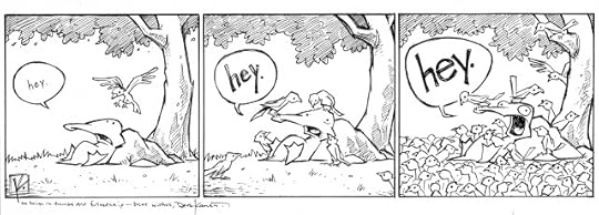 Carol brought a lot of original art for us to gawk at. It's amazingly clean work, and small (most cartoonists work at much larger than print size, but hers looks to be very close to its published size).
