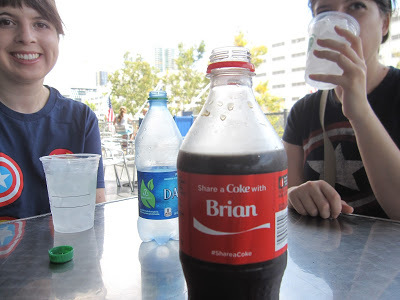 Lunch with Robin and Laura and a Coke. Coca-Cola's doing this thing now where they put names or cute words on their labels. Totally at random and against great odds, the Midway cafe's clerk handed me a Coke with my own name on it. Surely it was a sign. Of something. Haven't figured out what yet.
