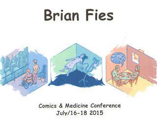 Juliet asked me to kick off the conference Thursday evening with a 15-minute talk on "Graphic Medicine and Community." I interpreted my job as explaining what graphic medicine is about (in fact, I lifted some of the intro above directly from my speech notes) and why we were all there. I hoped to set a tone for the weekend and think I did all right.