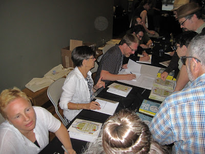 The final formal act of the conference was a feedback panel, where the organizers asked attendees to share the pros and cons of their experience to make the next one better. Left to right are Michael Green, MK (behind Michael), Ian, Susan Squier, and Juliet. That was followed by a Marketplace so everyone who'd brought comics to sell had a chance to make a few bucks.