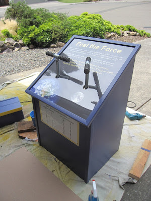 Dropped off at the Space Station Museum, next to a Saturn V model and a Soyuz control panel. The best part about making this delivery is that, while the Gravity Box was sitting outside on the sidewalk, two boys came up and began playing with it. Success!