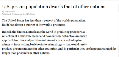 All of that stands in the starkest possible contrast to how ordinary Americans -- especially the poor and racial and ethnic minorities -- are treated by this same "justice system": with incomparably harsh and merciless punishment. From The New York Times, April 23, 2008: