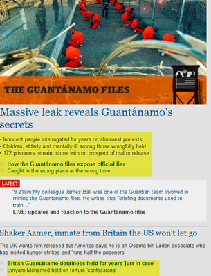 (3) The difference among the various newspapers in how these leaks are being presented is stark, predictable and revealing. The Guardian emphasizes exactly what is most important about these documents: how oppressive is this American detention system, how unreliable the evidence is on which the accusations are based, and how so many people were put in cages for years without any justification: