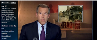 On August 18, NBC News anchor Brian Williams began his broadcast -- shown live to West Coast viewers, something done only for very significant occasions -- by excitedly declaring: "It's gone on longer than the Civil War, longer than World War II. And tonight, U.S. combat troops have pulled out of Iraq." He immediately called in Chief Foreign Correspondent Richard Engel, who was exclusively embedded with the 4th Stryker Brigade. Engel excitedly announced that "the last American combat...