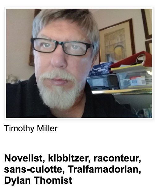 verbiage underneath my profile picture. Well, no one's ever asked me that before--I suspect no one's ever noticed it before-- but I suppose I should explain for his benefit, and for anyone else too shy to point out out that my new clothes look just like my birthday suit.Novelist–well, that's the easy one. Novel-writing is what you do when you hang up your apron after twenty-five years tending bar.