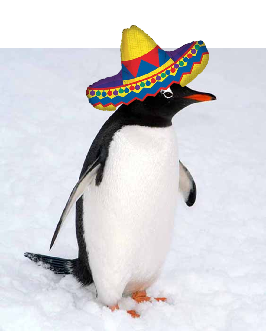 6. A penguin walks up to you, right now, wearing a sombrero. What does he say to you and why is he here?