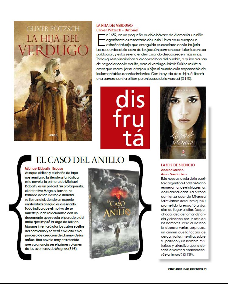 Lazos de Silencio, recomendada como lectura del mes en la revista Vanidades!!!!!! Gracias, la verdad ha sido emocionante ver mi novela ahí, además, la sinopsis que pusieron es genial :)