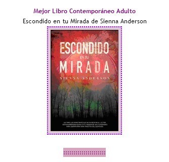 Mi novela, Escondido en tu mirada, publicada hace ya más de un año bajo el seudónimo de Sienna Anderson ha sido elegido Mejor Libro Contemporáneo Adulto por el blog The Itzel Library .