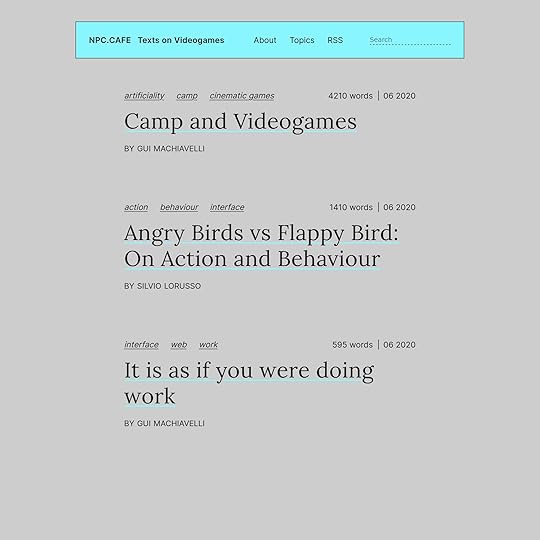 Gui Machiavelli and I didn’t really know where to publish our weird takes on videogames so we came up with our own text repository. It’s called npc.cafe because non-player characters are our friends. When I say ‘text’, I mean it: no images whatsoever, except for a bunch of emojis. It’s either read or play.