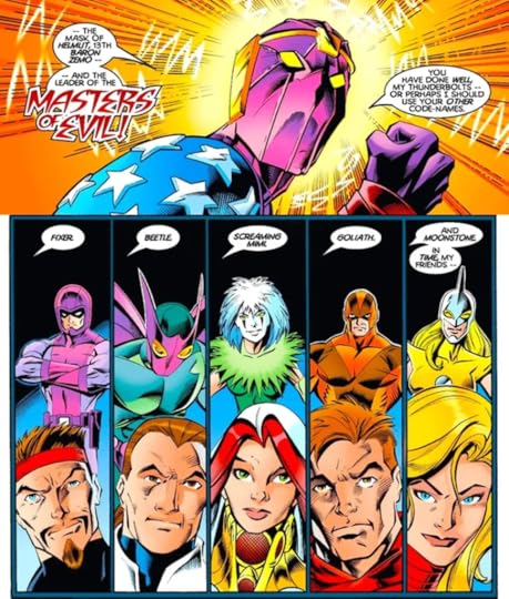 Anyway, the Thunderbolts then returned for their own series written by Kurt Busiek. It’s a pretty standard superhero team story right up until the shocking twist at the end of the first issue.