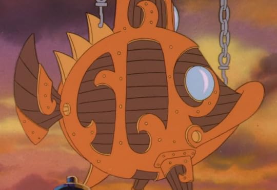While all this is going on there’s a subplot with Sebastien teaching a group of crab kids how to be scouts which I refuse to dignify with comment even though it takes up around half of the episode’s runtime. Instead, let’s check with Hans “The Man” Christian Andersen as he prepares to conquer the sea in his submarine, the Metal Fish.
