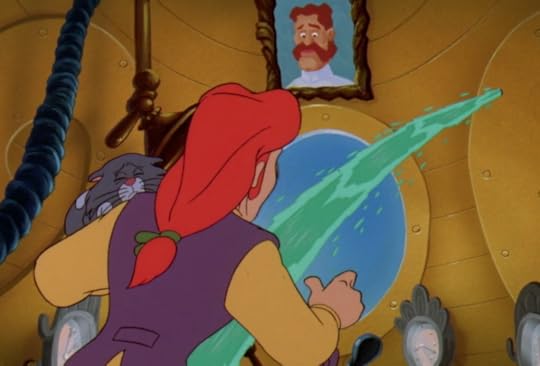 This script is around 90% more self aware than is typical for this show and it makes all the difference. Anyway, the episode reaches its glorious, sublime climax when the gang manage to rescue Sebastien who tells them that the pirates are planning on attacking a nearby ship and taking one of the passengers hostage. And then Ariel gets Scuttle to bring her an axe which she uses TO SINK THE PIRATE SHIP.