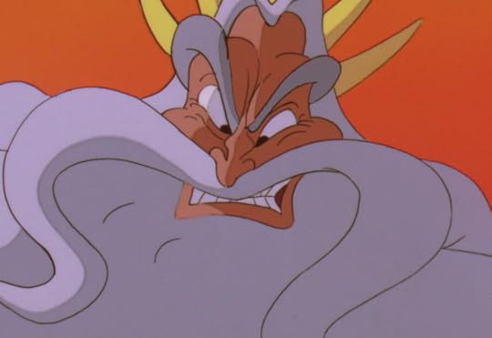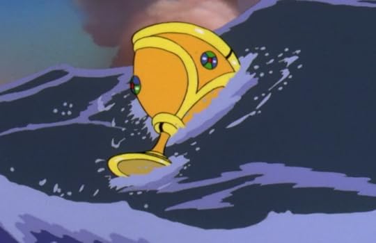 That’s right, this episode shows us the first meeting between Ariel and Scuttle, everyone’s favourite solid C-tier Disney comic relief character. While flying overhead, Scuttle sees the goblet and flies down to pick it up, calling it a “Dorfburple”. Meanwhile, Ariel is swimming up to get it, calling it a “Shimmermajigger” (this girl and her jiggers, I tell ya what). This leads to a hilarious scene which cuts rapidly between the two of them with Scuttle saying “Dorfburple!” and Ariel saying “Shimmermajigger!” back and forth and back and forth. It’s especially funny when you realise that, without the editing, Ariel must just be swimming through the sea yelling “Shimmermajigger! Shimmermajigger!” while Sebastien and Flounder exchange very sad looks.