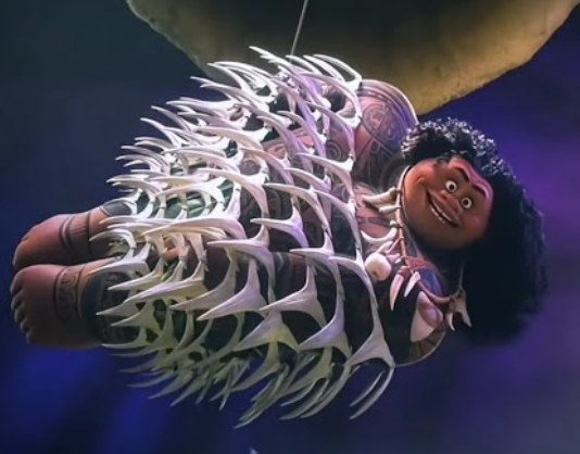Meanwhile the action shifts to Maui, played by Dwayne Johnson, presumably inbetween shoots for the live action Moana and pre-production for Moana 3, because we’re all trapped in this crazy Moanaverse together and there’s no escape. Maui visits a strange shadowy realm where he is taunted by a mysterious figure made of bats and quickly defeated.