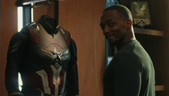 Sam confesses to Bucky his feelings of inadequacy, saying that he thinks Steve made the wrong choice giving him the shield. Bucky replies that Steve gave people something to believe in, but that Sam gives them something to aspire to. And I can’t help but notice that you could have swopped those around and it would have made about as much sense.