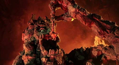 The Gump flies them out of the tower and they make a beeline for the Nome King’s mountain. The Nome King is played by Nicol Williamson, who also plays Doctor Whorley and is realised through…well, that’s complicated but for starters he’s a Claymation face made of rock.