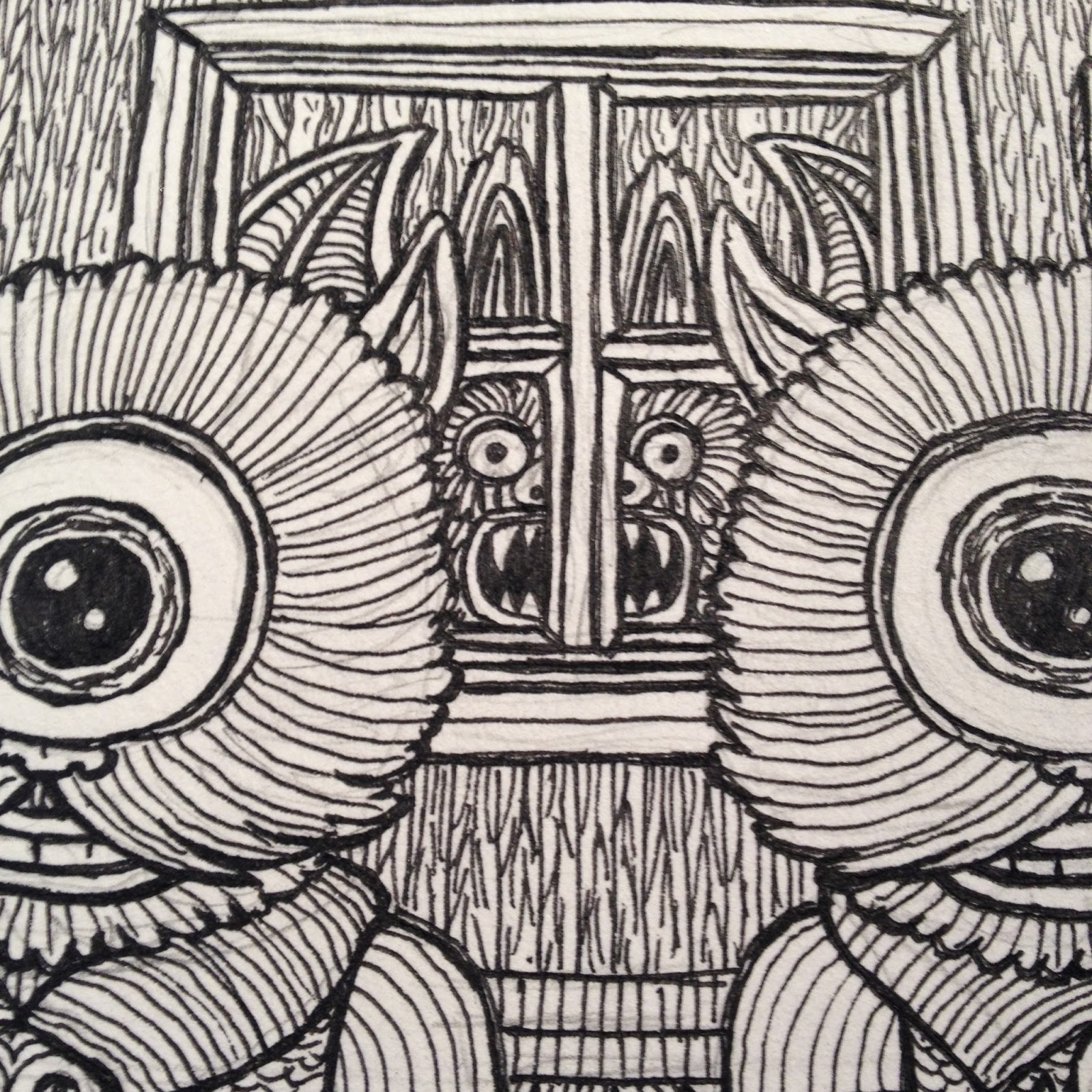 This is the last thing I drew in 2015. It's a beneficial monster that can turn garbage into useable clean energy orbs with its laser beam eyes.