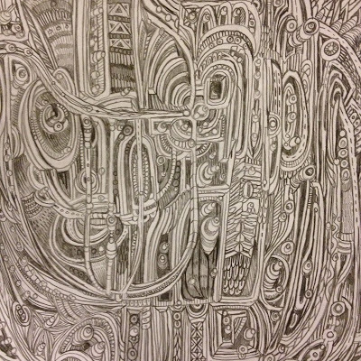 I've been sorting through old boxes, trying to get more organized for the coming year. I found the old unfinished pencil doodle on a big piece of paper that I'd forgotten about. Might have to finish it now.