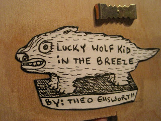 Lucky Wolf Kid in the Breeze (new woodcut for sale)