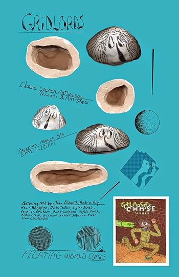 Here's some promo art for something I'm very excited about: The new comics anthology from my friends at Gridlords! Chase Scenes! I drew the cover and end page designs and contributed a 12 page comic. I'll have some original art on display at the release party at too. If you're in Portland, Head to Floating World Comics on March 5th!! This book has some of my favorite cartoonists in it.