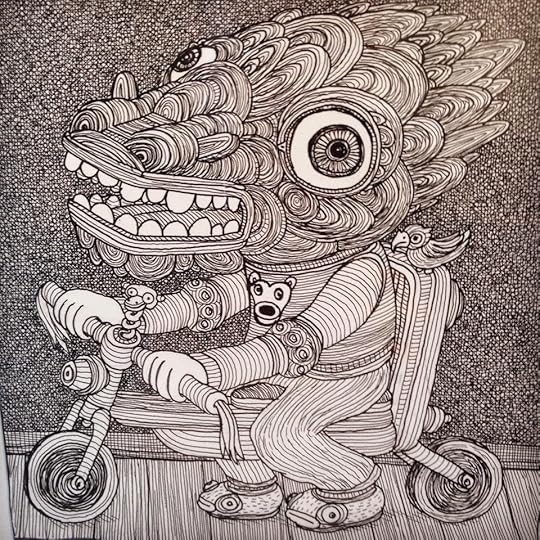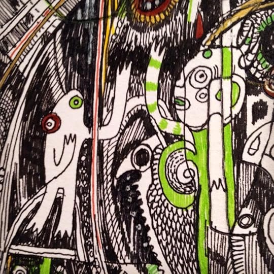 I was searching through a stack of drawings in my studio and started to realize just how many drawings I've done that no one has ever seen. This is a tiny detail from a big doodle I'd forgotten about.