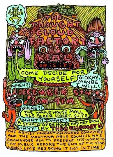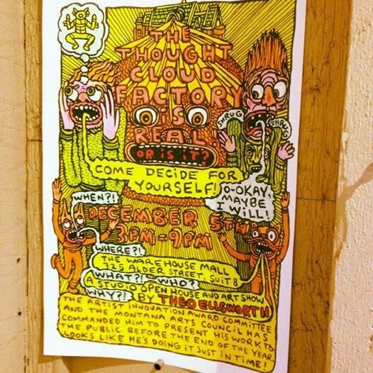 I'll be opening the doors to my studio here in Missoula, MT on the first Friday in December. The walls will be filled from floor to ceiling with art, I'll have books, zines and prints for sale, I'll be doing some live drawing and playing records from albums I've made the art for. This is the first unveiling of my new space and it fulfills my promise to present my work to the public before the end of the year as part of receiving The Artists Innovation Award this past January.